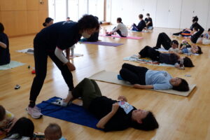 今日はママフィットがありました♪ 最初に骨盤のゆがみを治す体操をしました。 足の長さが違っている方が多くいましたが、体操後は足の長さが同じになっていました! その後音楽に合わせて、ほどよく汗ばむくらい…