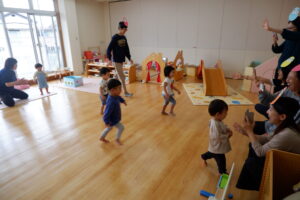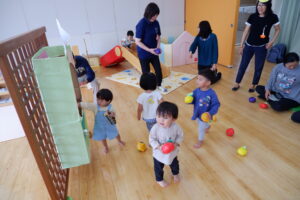 今日は、歩く子がたくさんいたのでかけっこしたり、玉入れもがんばりました!!