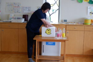 お楽しみは、おばけちゃんがでてきて水がジュースに変わってしまったり、おばけちゃんの体の色が変わってしまうマジックをみました(^^)