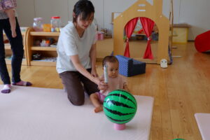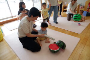 スイカのボールを叩いたり、叩くと割れるスイカもありました(^^♪